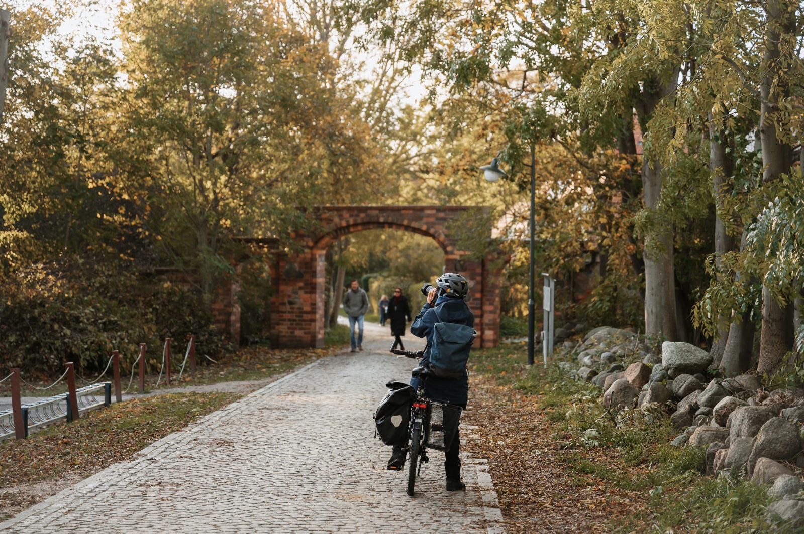 Die Insel ist 17 km lang, autofrei, flach. Eine Richtung reicht für einen halben Tag. Von Neuendorf im Süden über Vitte nach Kloster im Norden: Boddenblick links, Ostsee rechts. Fahrrad mitbringen oder auf der Insel leihen. Kein Navi nötig — es gibt nur eine Straße.